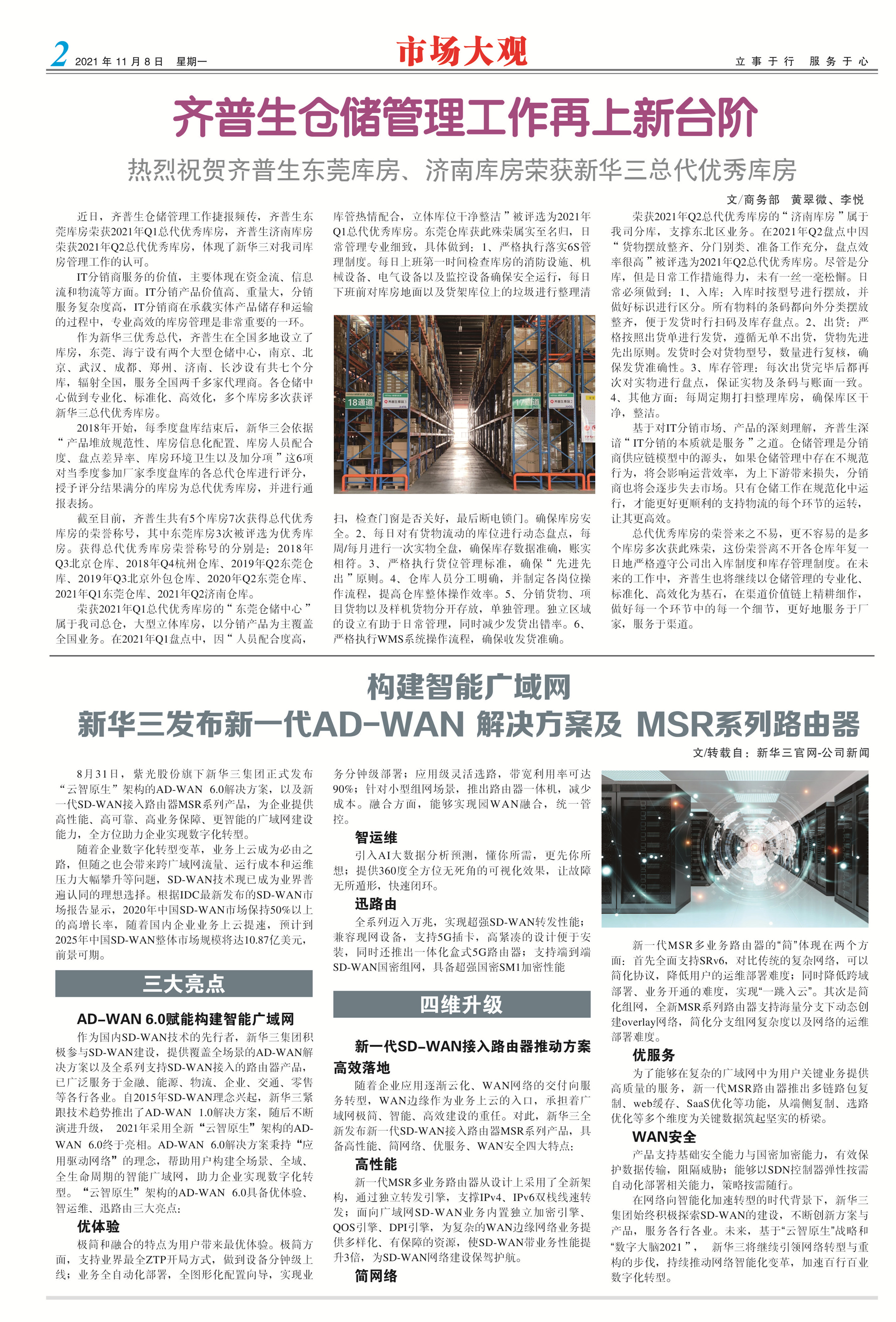 齊普生倉儲管理工作再上新臺階—— 熱烈祝賀齊普生東莞庫房、濟南庫房榮獲新華三總代優(yōu)秀庫房